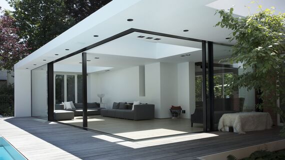 HiFinity's ultra-slim profiles create seemingly endless transparent surfaces with a minimalist look. The elegant aluminium sliding system combines an infinite view with impressive performances. The perfect choice for any low-energy contemporary building.